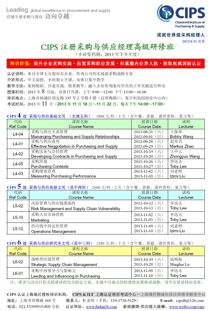 2013下半年度CIPS注册采购与供应经理高级研修班