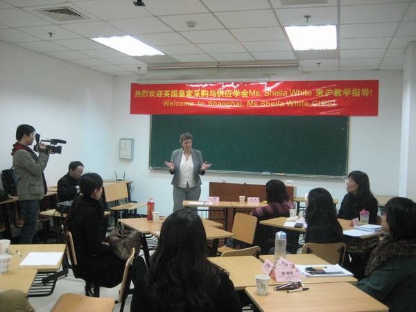 2010年4月10日CIPS英国皇家采购与供应学会国际发展部主任SheilaWhite女士一行在中交协物流人力资源培训中心陈玉庚经理的陪同下抵达上海,亲临上海现代物流科技培训指导服务中心指导教学工作,SheilaWhite女士对CIPS认证的发展历史、会员规模、证书的国际地位、课程特色、考试技巧等方面进行了精炼、生动的讲演,并与我中心参加CIPS四、五级培训班的讲师、学员进行了现场互动交流,部分CIPS四五级获证学员也参加了本次活动并由SheilaWhite女士亲自为其颁证和合影留念。