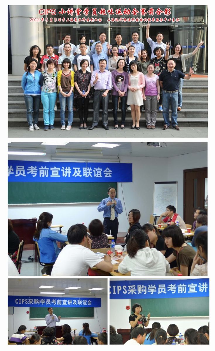 为帮助CIPS学员复习迎考,在总结本期学习效果的同时,分享、借鉴采购讲师和往期优秀学员的学习经验与考试心得,同时利用这个学习平台进一步汇聚人脉、增进交流,上海现代物流科技培训指导服务中心于2012年5月5日星期六傍晚举办了“CIPS小讲堂考前宣讲会暨上海现代物流2012上半年度CIPS学员联谊会”,活动设置了CIPS学员趣味运动比赛、CIPS小讲堂考前宣讲会、CIPS师生交流晚宴及颁奖会等三个环节,活动在轻快、怡悦的气氛中进行。来自本期2012上半年度的近30名学员踊跃参与了趣味动比赛,活动既发挥了学员们的团队协作精神,又使得紧张的课堂生活得到的舒展。经过各个项目的比赛,活动评出了小组冠军和跳绳、自行车慢骑两个单项冠军。
