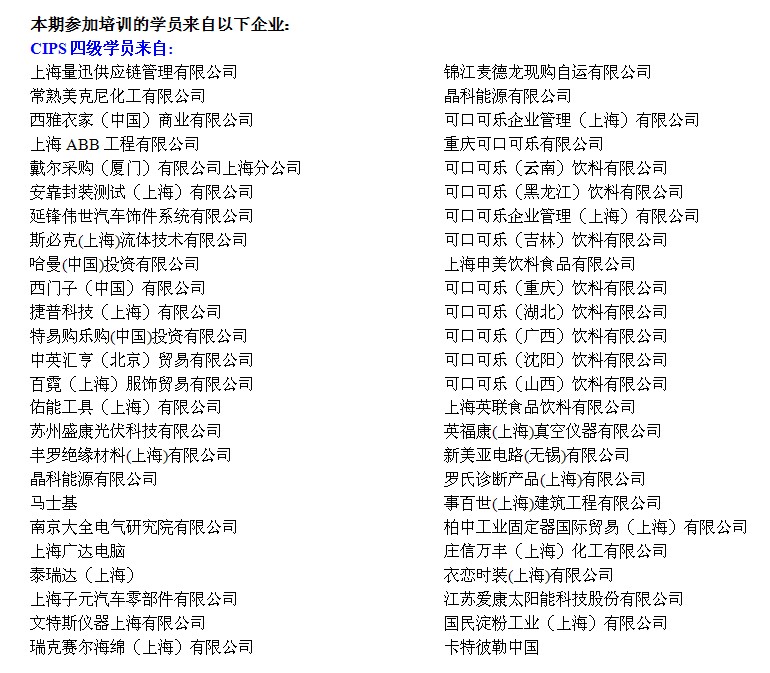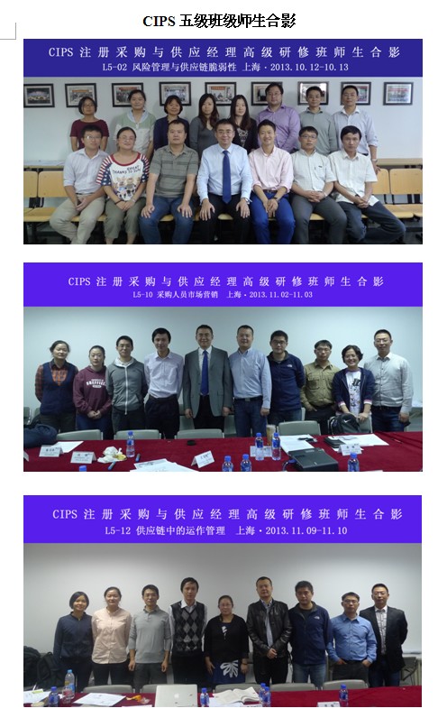 我中心针对培训班所选派的代表中国地区高端水平的实战派讲师及一系列精细化培训服务深受广大企业学员好评,本期CIPS注册采购与供应经理四、五、六级高级研修班都取得了圆满成功!